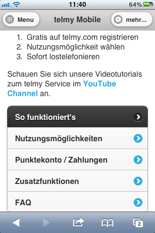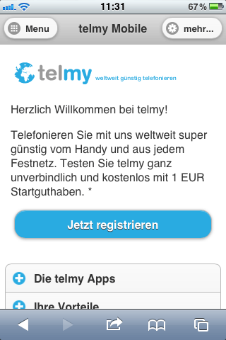 Sie erreichen uns auch jederzeit von unterwegs aus über unsere mobile Seite unter: m.telmy.com