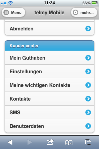 • Guthabenübersicht inkl. Link zur mobilen Seite megabill und Auflademöglichkeit