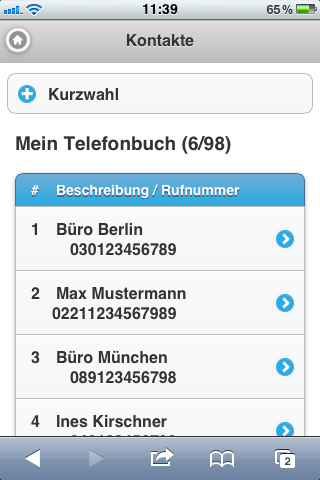 • Änderung persönlicher Daten möglich (Rufnummern hinzufügen / ändern)